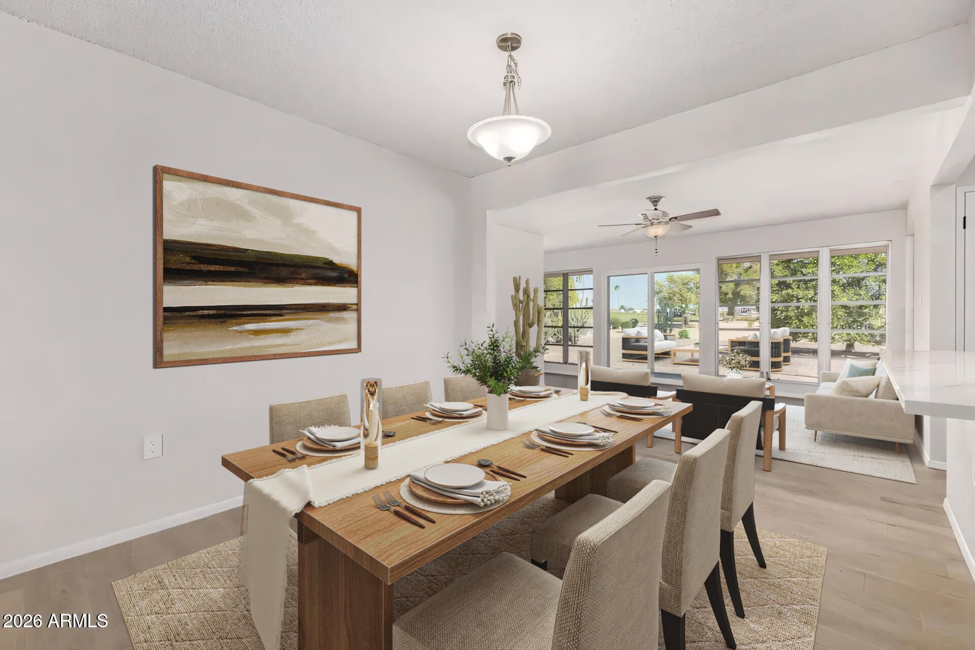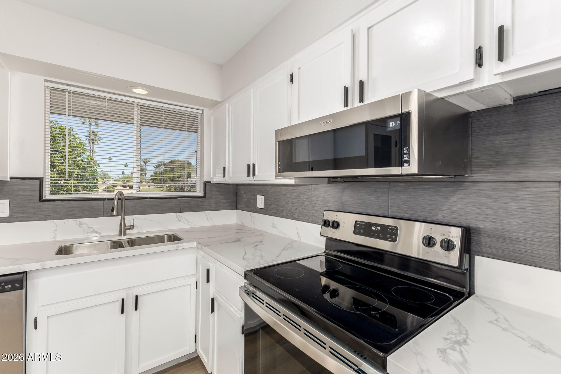 Welcome to this recently updated single-story home nestled in a vibrant 55+ community in Sun City AZ. Offering 2 spacious bedrooms and 2 modern bathrooms. Step inside to discover a freshly opened up kitchen and family room. Brand new carpeting, and stylish flooring that seamlessly blend comfort and elegance. The kitchen is a chefs delight, boasting new quartz countertops, sleek stainless steel appliances, new counter space and cabinets, perfect for culinary adventures. Newer roof-only a couple years old! Newer AC unit! Outside, the easy-maintenance front and back yards provide a serene retreat for relaxation and outdoor enjoyment. This home is a perfect blend of modern upgrades and low-maintenance living, designed for your utmost comfort and convenience.
