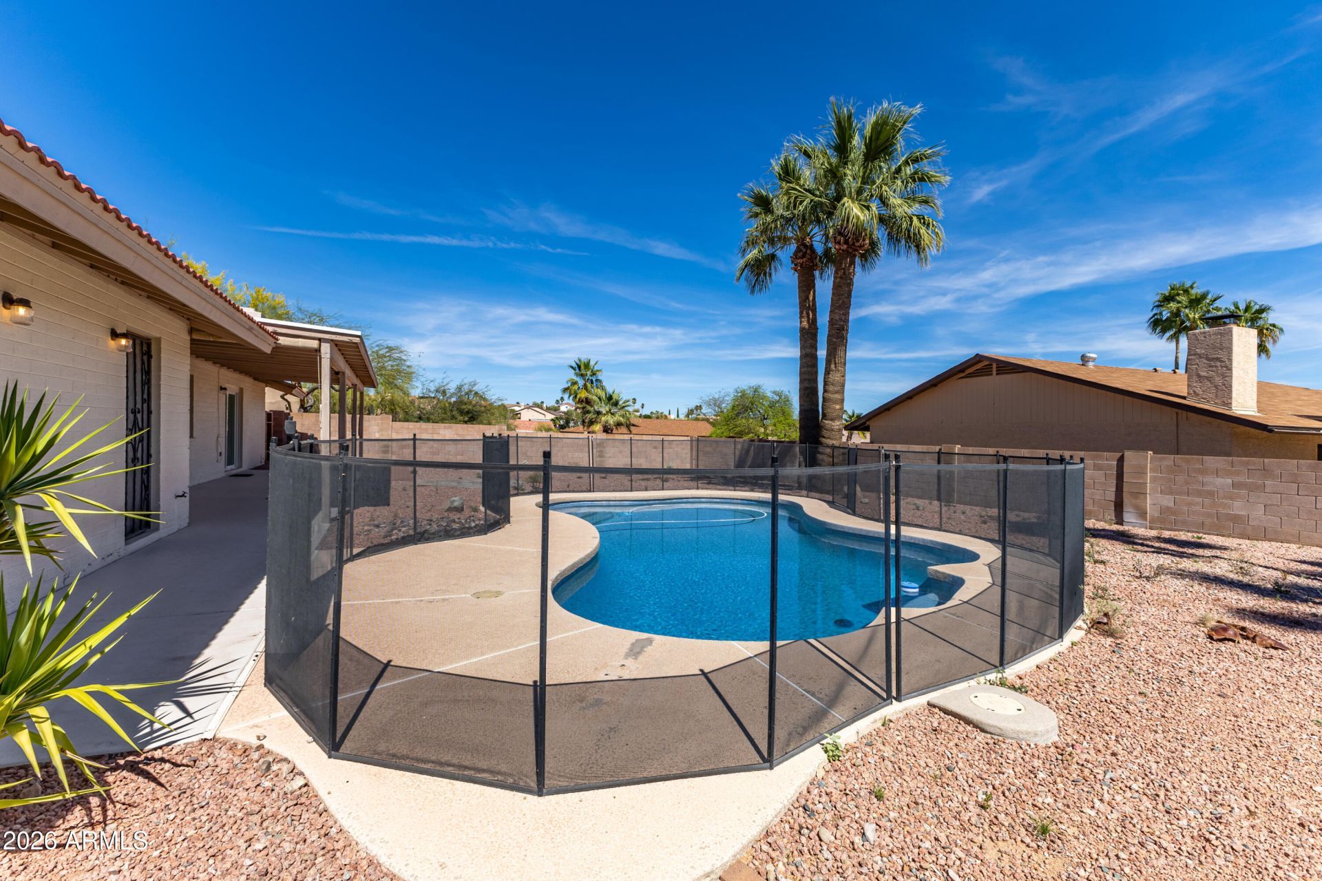 Welcome to this beautifully remodeled single-level home in Fountain Hills, offering the perfect blend of comfort, style, and Arizona outdoor living. Situated on a spacious lot with mountain views, this move-in ready home features a large fenced backyard complete with a private pool and an expansive covered patio--ideal for relaxing or entertaining. Inside, the updated kitchen showcases white shaker cabinetry, butcher block countertops, and stainless steel appliances, all opening seamlessly to the family room and outdoor living space for effortless indoor-outdoor flow. The family room is anchored by a cozy wood-burning fireplace, creating a warm and inviting atmosphere. In addition to the main living area, the home offers a formal living room and dining room, providing flexible space for gatherings or everyday living. The primary suite is a true retreat, featuring a beautifully updated ensuite bath with a walk-in tile shower, dual sink vanity, and private access to the backyard for easy poolside enjoyment. Luxury vinyl plank flooring runs throughout the home, complemented by upgraded baseboards for a clean, modern finish. The guest bathroom is also nicely remodeled and all bedrooms are generously sized. Start living the relaxed Fountain Hills lifestyle today.