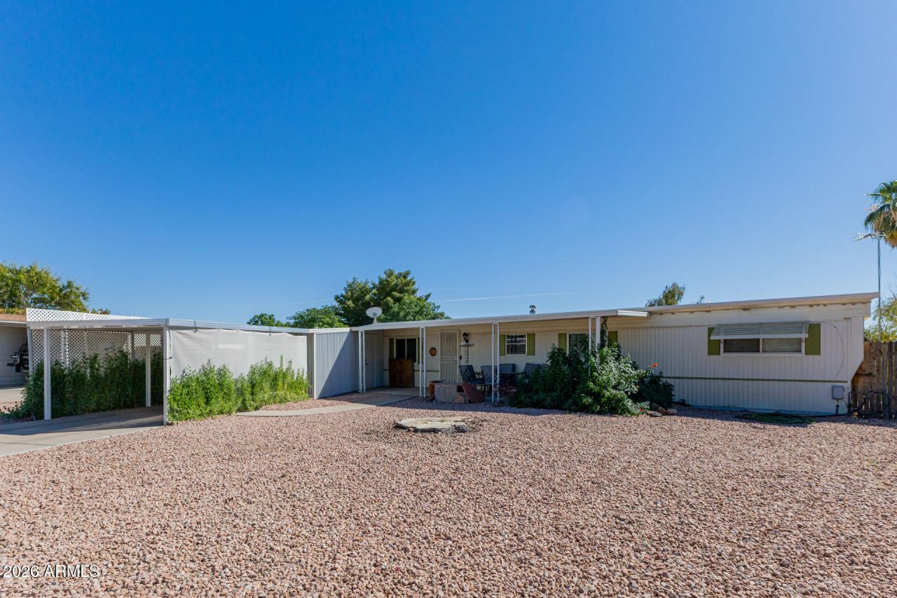Move-in ready and beautifully renovated manufactured home located in a convenient Phoenix location! This charming property features thoughtful updates throughout, offering a clean and modern feel. Enjoy the added versatility of an enclosed room--perfect for extra storage, a workshop, or hobby space. Covered parking provides protection from the Arizona sun, adding everyday convenience. A great opportunity for comfortable living with functional extras!