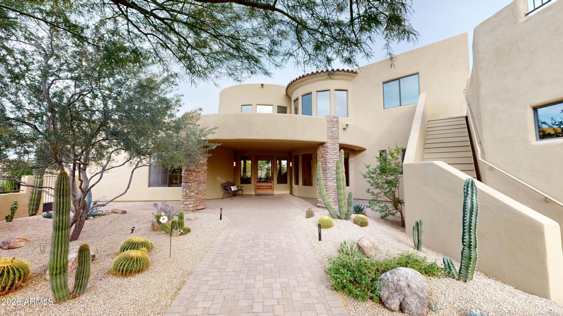 Discover your own 1+ acre private North Scottsdale sanctuary perfectly positioned on a quiet, freshly asphalted dead-end street with NO HOA and panoramic 360-degree views. RV hookup w/30&50 amp allow for RV storage to south of home with newly installed tree line for privacy & extra-large 5 car garage with south garage being 37 in depth w/10 ceiling (9Hx10W) garage door for all your toys. The moment you enter this stunning home youre greeted with soaring 24 ceilings and dramatic pool view creating an immediate sense of space, light, and desert elegance anchoring the heart of the home. Designed for flexibility and privacy, this residence offers a layout that works beautifully for multi generational living, long term guests, or anyone wanting separation of space. Formal living with built in fireplace surround, formal dining, large kitchen with 6 burner gas stove and dbl ovens, luxury GE stainless steel appliances, large walk-in pantry and additional under stairwell storage, bar height counter island seating with granite, eat in dining nook all overlooking a separate family room with its own gas fireplace & pool view. This home has an overabundance of storage and walk-in closets with ensuite bathrooms. In addition to the 4 bdrms there are 2 addtl spaces which can be used as desired, 4th bdrm acts as the mother-in-law or guest set up with its own bathroom, plus the addtl space currently a bdrm as its main room accessible from inside or own separate exterior entrance with rooftop view deck & w/d hookups. The first level secondary space is currently used as an office. There is a large loft with den area perfect for library/poker/game room, a small seating nook and extra room for more entertainment or library set up with access to separate roof top view deck for the stunning sunsets. An expansive master suite with floor to ceiling gas fireplace as a main focal point with private access French doors to the generous entertaining backyard patio and roomy master bath with soaking tub. Newer added pool fireplace and stack stone pool surround with turf grass and built in BBQ center. See attached upgrades sheet in documents provided by seller.