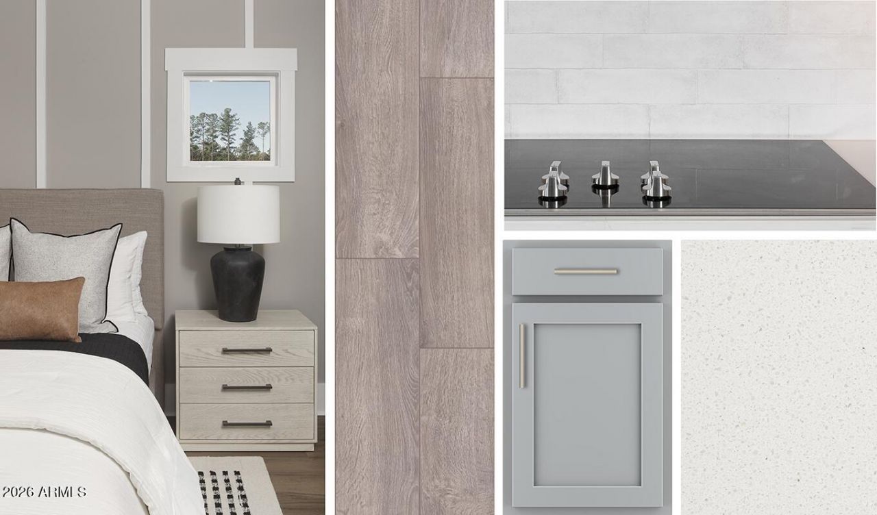 Welcome to this stunning Sunflower plan, a beautifully designed 2219 sq. ft. home offering 4 bedrooms, 3 full bathrooms, and a private guest retreat for ultimate comfort and versatility. This modern residence features a striking paver driveway and a sleek modern desert contemporary exterior that perfectly complements the surrounding landscape.Upon entering, youll immediately be impressed by the 9-ft ceilings and 8-ft interior doors throughout, enhancing the homes open, airy feel. The expansive great room is a true highlight, featuring a 4-panel center sliding door that opens to the backyard, seamlessly blending indoor and outdoor living. Perfect for hosting gatherings or enjoying quiet moments, the space is filled with natural light and offers an open, airy atmosphere situated on a nice end homesite.This home features our elegant Milan collection offering modern desert-inspired architecture with luxurious finishes. The kitchen showcases 42-inch shaker style gray cabinets that give a fresh, modern aesthetic with a satin nickel hardware finish. The white sand quartz island adds a touch of luxury, while the sleek subway style backsplash provides a pop of texture. The kitchen is equipped with an undermount stainless steel sink, ensuring both style and practicality. Sleek satin nickel bathroom fixtures and door hardware throughout the home adds a touch of sophistication and cohesiveness throughout. All stainless-steel appliances including a gas stove, dishwasher, microwave and fridge are included.The flooring throughout the home has been thoughtfully chosen to enhance the overall design. Gorgeous 7x22 neutral wood look plank tiles grace the main living areas, and guest retreat providing a stylish, easy-to-maintain surface that complements the homes modern finishes while plush carpeting sits in the bedrooms. The open-concept layout connects the kitchen, dining, and living areas, creating a perfect flow for everyday living or entertaining.The primary suite offers a peaceful retreat with ample space, and the en-suite bathroom features satin nickel finishes, dual sinks, quartz countertops and ample storage. Designed with practicality in mind, this home also features a 2.5 car tandem garage, providing plenty of space for vehicles, storage, or hobbies. Additional features include a soft water loop, garage door opener, window coverings, and washer and dryer for that turnkey feel.This Sunflower plan home is ideal for those who appreciate both modern style and functional living. With its luxurious finishes, open layout, and thoughtful design, its a home that truly has it all.